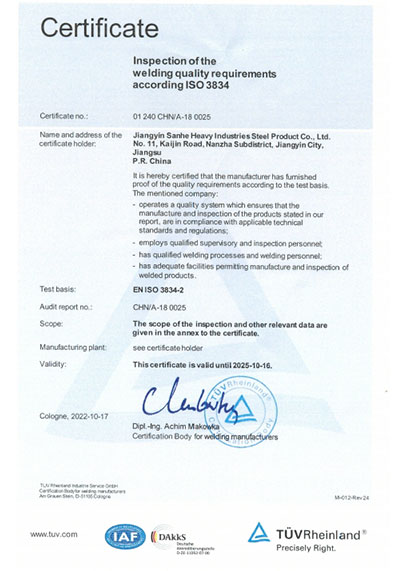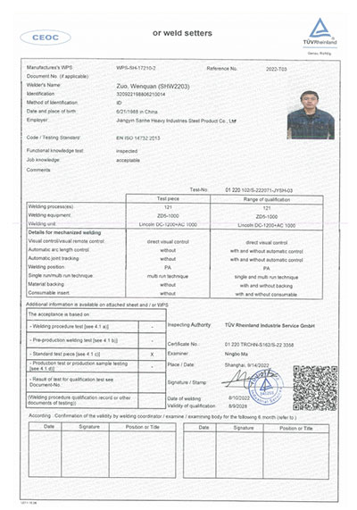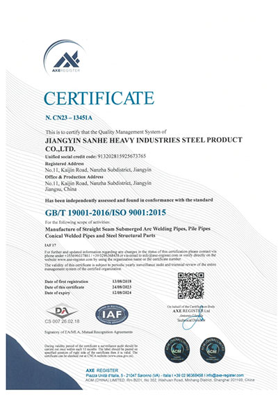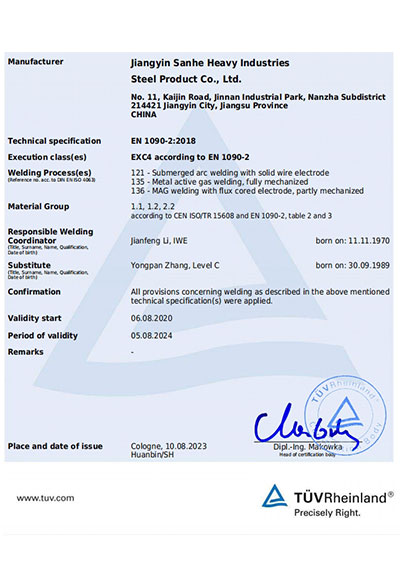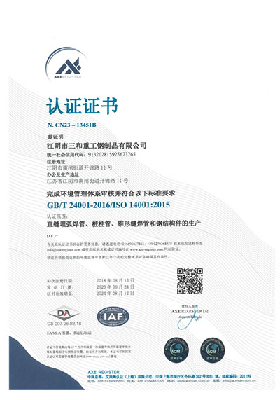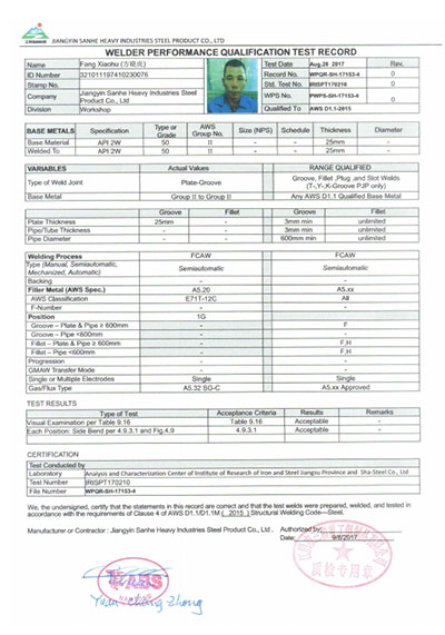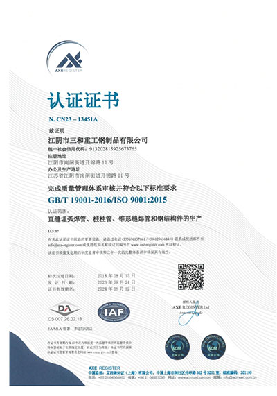 江陰市三和重工鋼制品有限公司成立于2012年3月,總投資1.2億,坐落于江蘇省江陰市南閘錦南工業(yè)區(qū),占地4萬平方米,廠房面積3萬平方米。專業(yè)從事大口徑厚壁直縫埋弧焊接(LSAW)鋼管、方管、錐管,RBE卷制埋弧焊接鋼管的研發(fā)、生產和銷售。公司憑借著嚴謹?shù)漠a品質量管理,先后通過了ISO三體系認證,RS、BV等船社級工廠認證,同時取得了CE CPR,API2B等歐美地區(qū)資質認證。公司擁有一條完整的,可以生產單支長度達到12米的JCO直縫埋弧焊鋼管生產線(品牌:美國林肯) ,3套卷管生產線以及異型管生產線。公司主要產品有各種大小厚壁直縫埋弧焊管、卷管、方管、矩形管、錐管、多邊形管等,主要以厚壁管為主。可按國家標準GB9711 、GB50250 系列 ,國際標準API? SPEC 2B及EN10210、EN10219、EN10208、 A671、A672等生產各種規(guī)格鋼管,年綜合產能達20萬噸,產品廣泛應用于海上 石油鉆井平臺、輸煤漿、輸水、特高壓輸電鐵塔電,石油化工、高層建筑鋼結構建筑工程、大型海洋碼頭樁管等領域。公司擁有一支由我國制管行業(yè)領先的技術團隊,并與國內制管技術與工藝方面的專家、科研院所建立了密切的合作關系, 研發(fā)能力處于國內先進水平,專門生產厚壁鋼管。為擴大產能,滿足對客戶長直管的需求,2023年11月30日,在靖江:江陰-靖江工業(yè)園區(qū)成立了三和重工的全資子公司:江陰市永祥鋼制品有限公司,可以對接環(huán)焊總長超過三十米的焊接鋼管及各類型鋼結構產品。江陰市三和重工鋼制品有限公司扎根于江陰,放眼于全球,通過持續(xù)的產業(yè)規(guī)模擴張和技術提升,立志成為大直縫埋弧焊管行業(yè)具有國際影響力的企業(yè)。